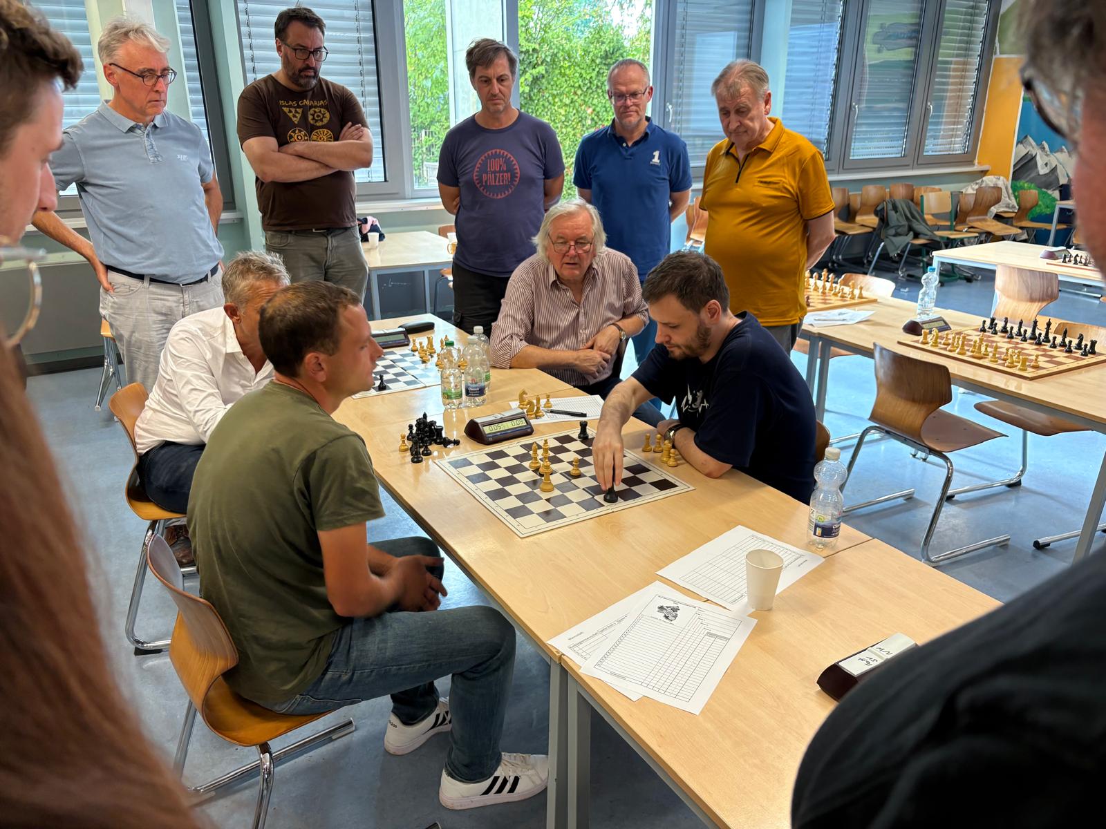 (Spannung in der letzten Runde: Adrian Karpa vs. IM Lukas Winterberg, Adrian gewinnt zum 2-2 für Landau II)